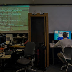 The limestone of Iron Mountain was re-created in the installation with a 3D printed relief as the backdrop of the space, extruded from an image of an actual office at Iron Mountain.